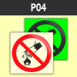 Знак P04 «Запрещается тушить водой» (фотолюминесцентная пленка ГОСТ 34428-2018, 125х125 мм)