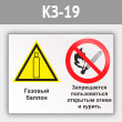 Знак «Газовый баллон. Запрещается пользоваться открытым огнем и курить», КЗ-19 (металл, 600х400 мм)