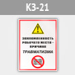 Знак «Захламленность рабочего места - причина травматизма», КЗ-21 (металл, 400х600 мм)