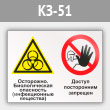 Знак «Осторожно - биологическая опасность (инфекционные вещества). Доступ посторонним запрещен», КЗ-51 (металл, 600х400 мм)
