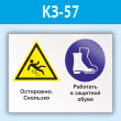 Знак «Осторожно - скользко. Работать в защитной обуви», КЗ-57 (пластик, 400х300 мм)