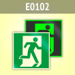 Знак E01-02 «Выход здесь (правосторонний)» (фотолюминесцентный пластик ГОСТ 34428-2018, 100х100 мм)