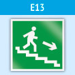 Знак E13 «Направление к эвакуационному выходу по лестнице вниз (правосторонний)» (пластик, 200х200 мм)