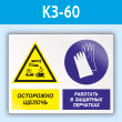 Знак «Осторожно - щелочь. Работать в защитных перчатках», КЗ-60 (пленка, 400х300 мм)