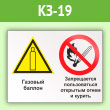 Знак «Газовый баллон. Запрещается пользоваться открытым огнем и курить», КЗ-19 (пленка, 600х400 мм)
