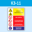 Знак «Взрывопожароопасно - не курить, не пользоваться открытым огнем, не пользоваться мобильным телефоном, выключить двигатель», КЗ-11 (пленка, 300х400 мм)