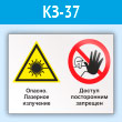Знак «Опасно - лазерное излучение - доступ посторонним запрещен», КЗ-37 (пленка, 400х300 мм)