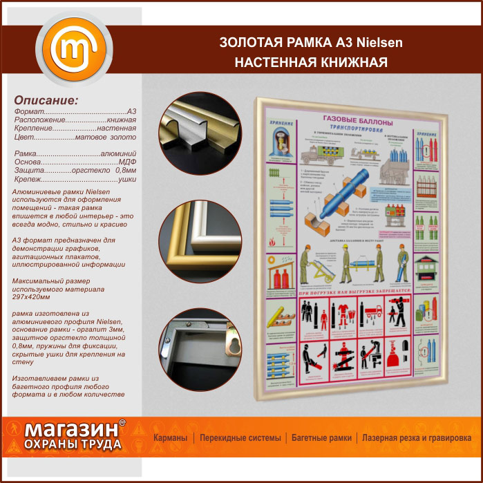 Багетная настенная рамка «Nielsen» А3 формата, книжная, матовое золото в Москве купить