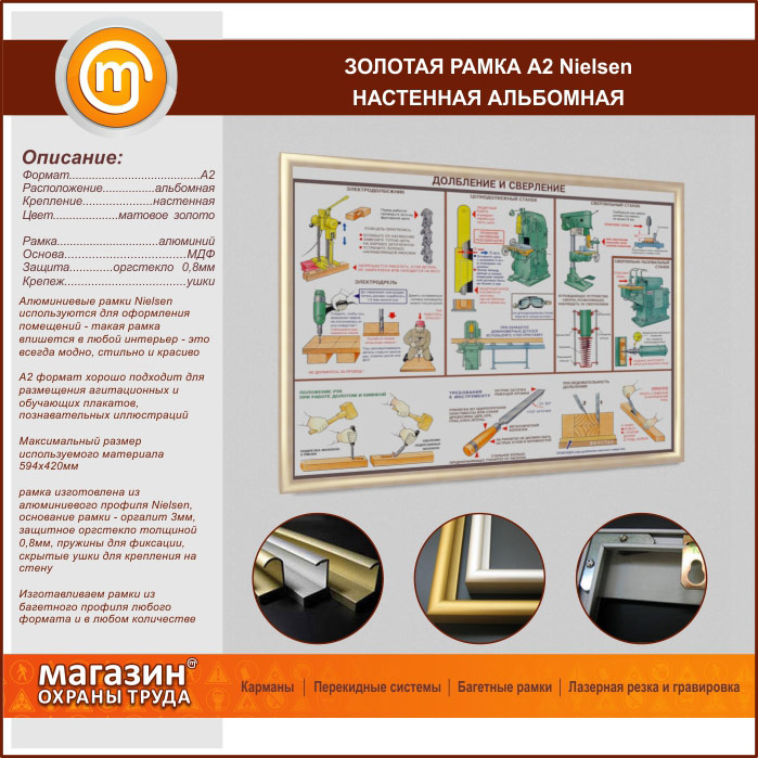 Багетная настенная рамка «Nielsen» А2 формата, альбомная, матовое золото в Москве купить