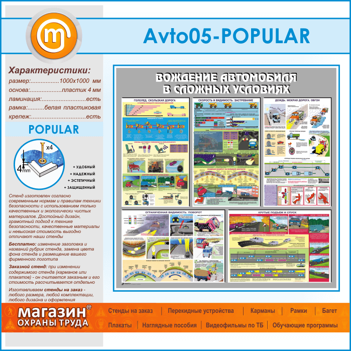 Стенд «Вождение автомобиля в сложных условиях» (AV-05-POPULAR) в Москве купить