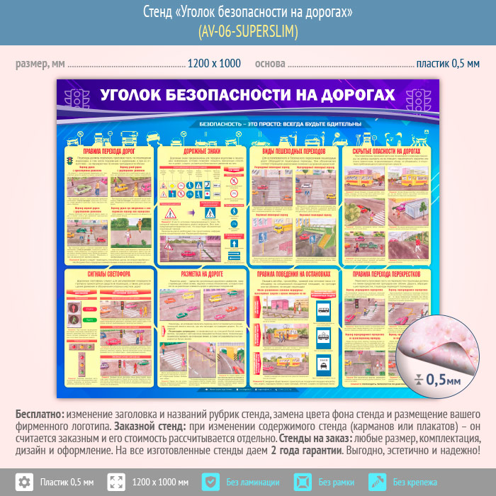Стенд «Уголок безопасности на дорогах» (AV-06-SUPERSLIM) в Москве купить