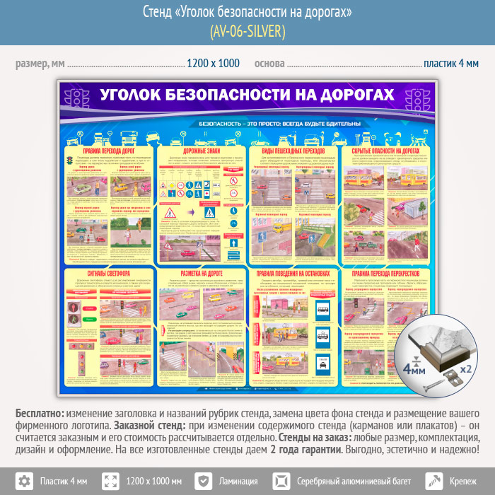 Стенд «Уголок безопасности на дорогах» (AV-06-SILVER) в Москве купить