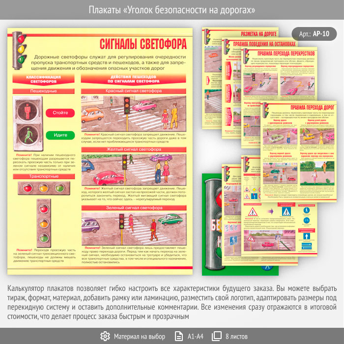 Плакаты «Уголок безопасности на дорогах» (АР-10, 8 листов) в Москве купить