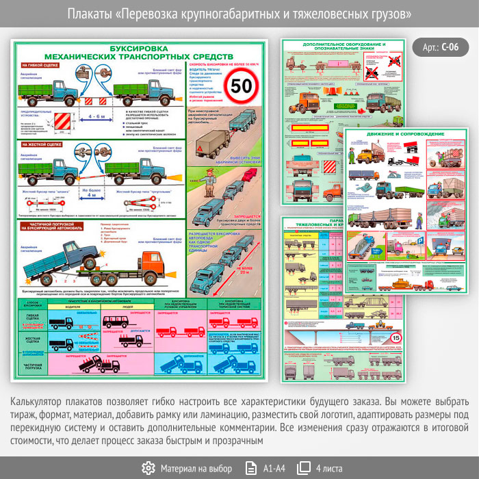 Плакаты «Перевозка крупногабаритных и тяжеловесных грузов» (С-06, 4 листа) в Москве купить
