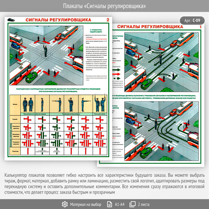 Плакаты «Сигналы регулировщика» (С-09, 2 листа) в Москве купить