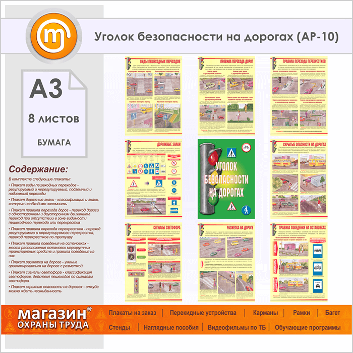 Плакаты «Уголок безопасности на дорогах» (АР-10, бумага, А3, 8 листов) в Москве купить