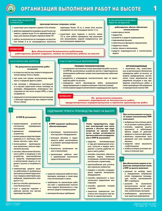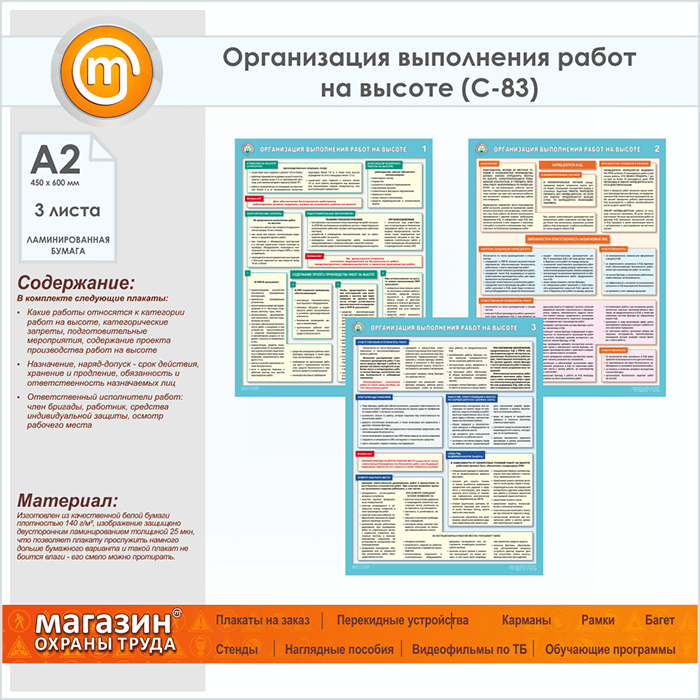 Плакаты «Организация выполнения работ на высоте» (С-83, ламинированная бумага, А2, 3 листа) в Москве купить