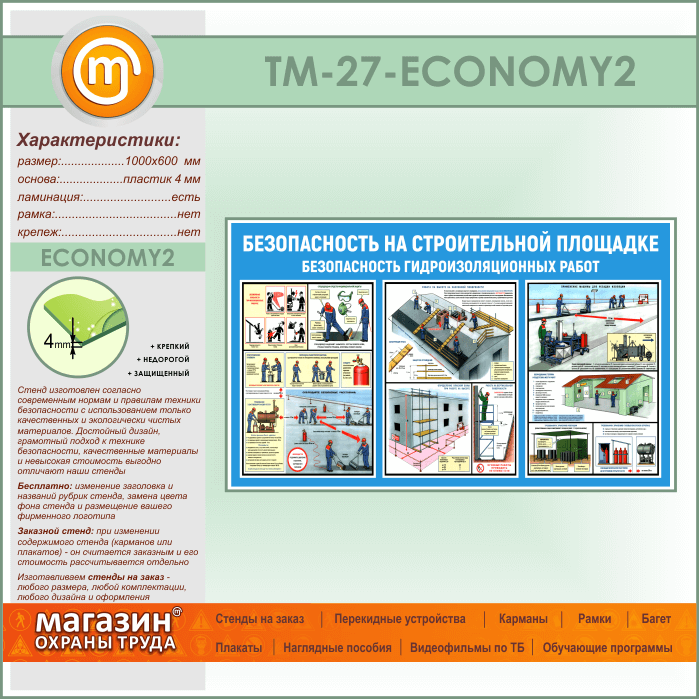 Стенд «Безопасность на строительной площадке. Безопасность гидроизоляционных работ» (TM-27-ECONOMY2) в Москве купить