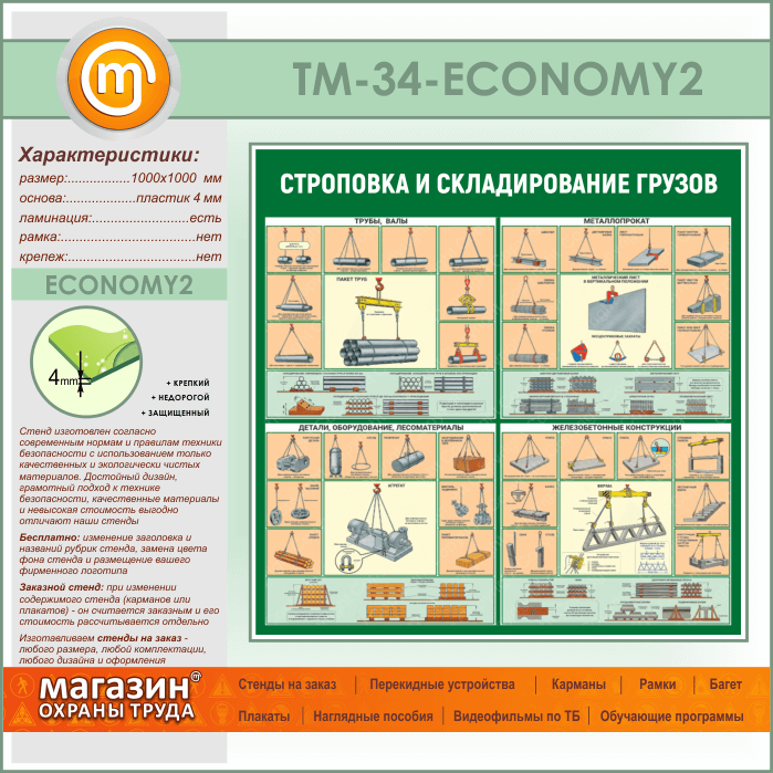 Стенд «Строповка и складирование грузов» (TM-34-ECONOMY2) в Москве купить