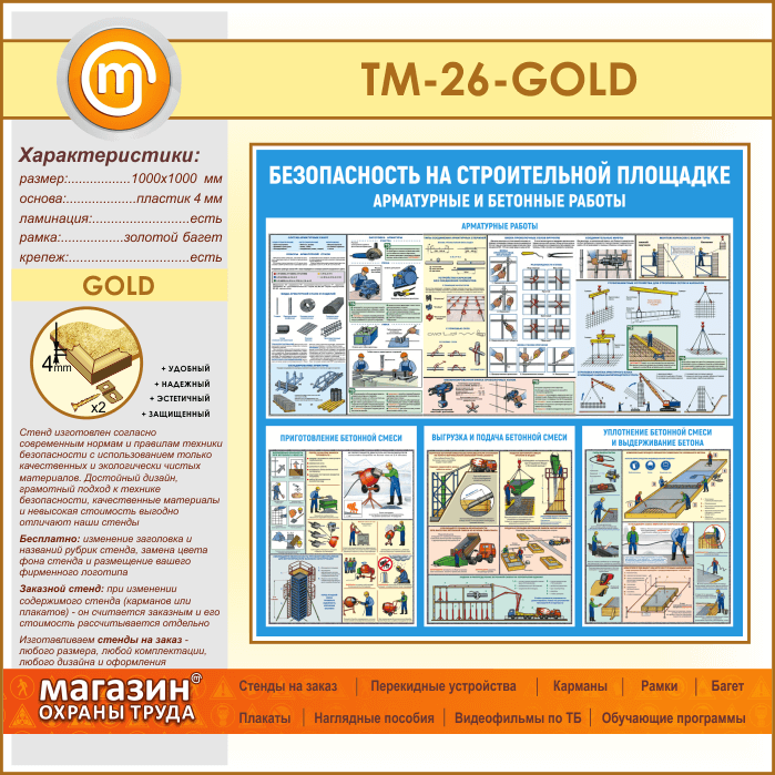 Стенд «Безопасность на строительной площадке. Арматурные и бетонные работы» (TM-26-GOLD) в Москве купить