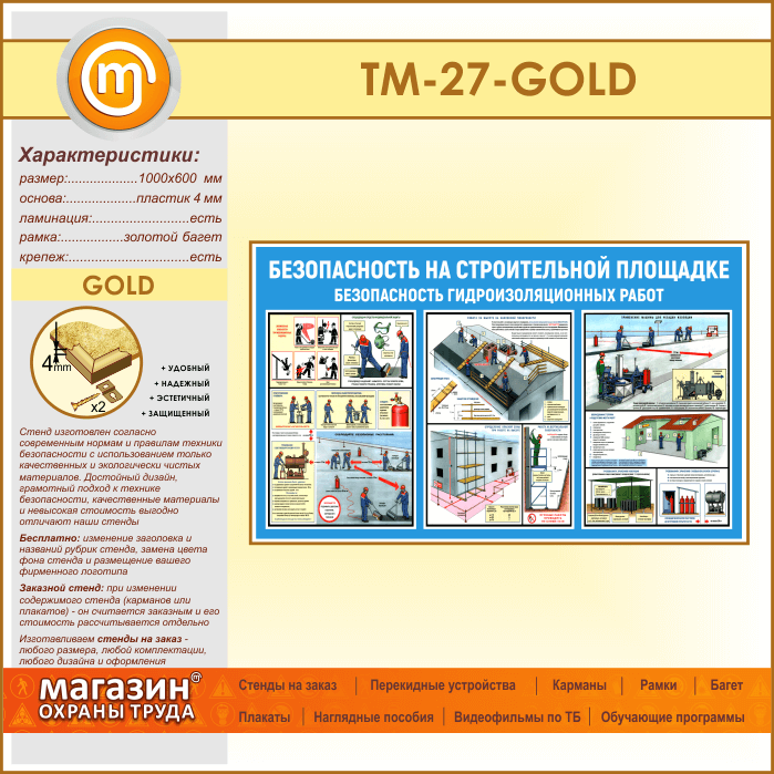 Стенд «Безопасность на строительной площадке. Безопасность гидроизоляционных работ» (TM-27-GOLD) в Москве купить