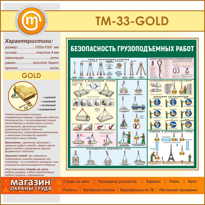 Стенд «Безопасность грузоподъемных работ» (TM-33-GOLD) в Москве купить