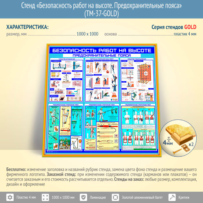 Стенд «Безопасность работ на высоте. Предохранительные пояса» (TM-37-GOLD) в Москве купить