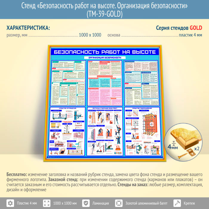 Стенд «Безопасность работ на высоте. Организация безопасности» (TM-39-GOLD) в Москве купить