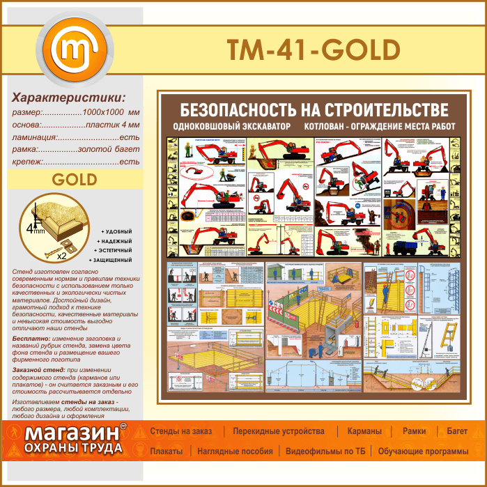 Стенд «Безопасность земляных работ. Экскаватор, котлован» (TM-41-GOLD) в Москве купить