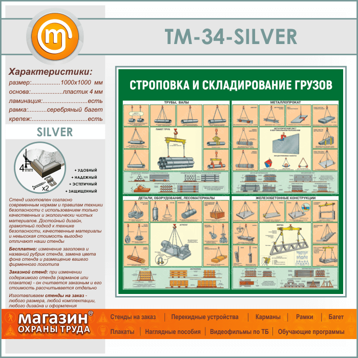 Стенд «Строповка и складирование грузов» (TM-34-SILVER) в Москве купить
