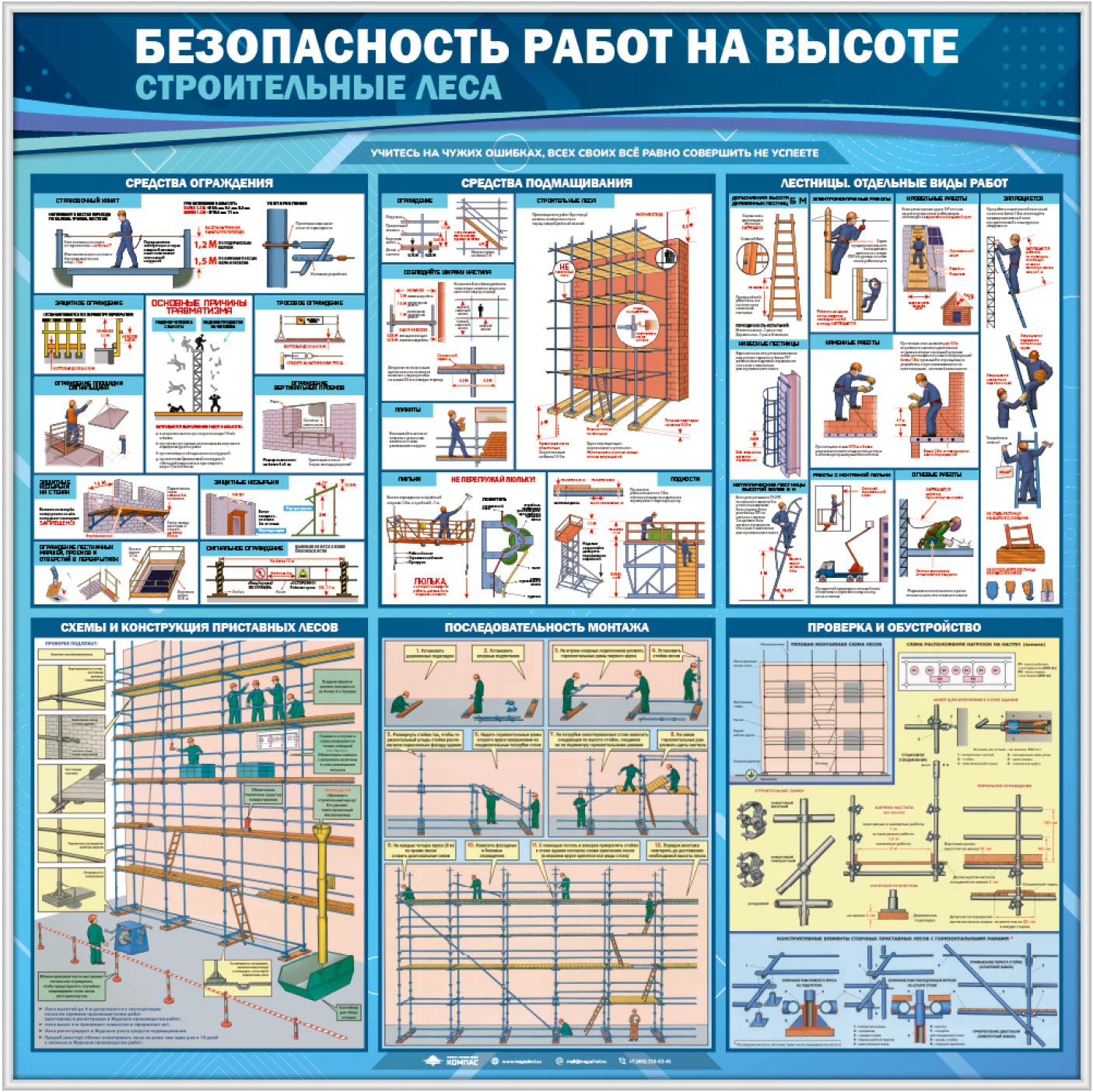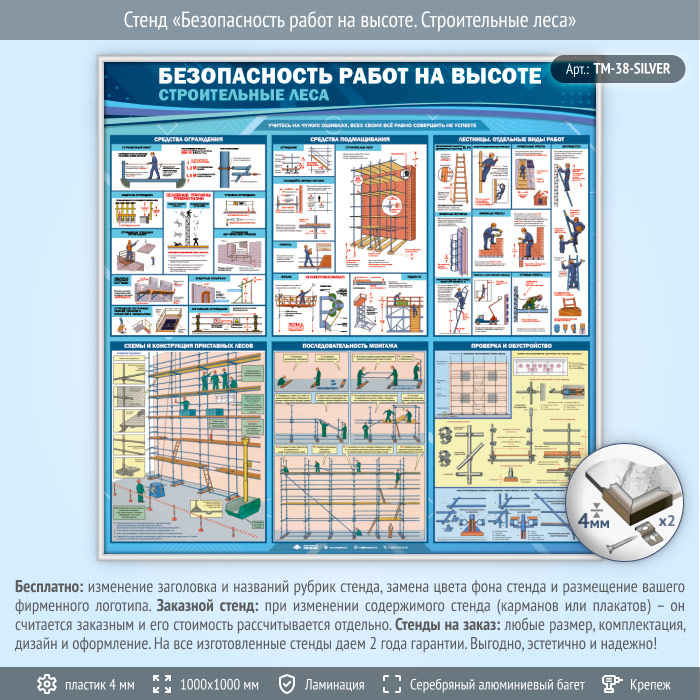 Стенд «Безопасность работ на высоте. Строительные леса» (TM-38-SILVER) в Москве купить