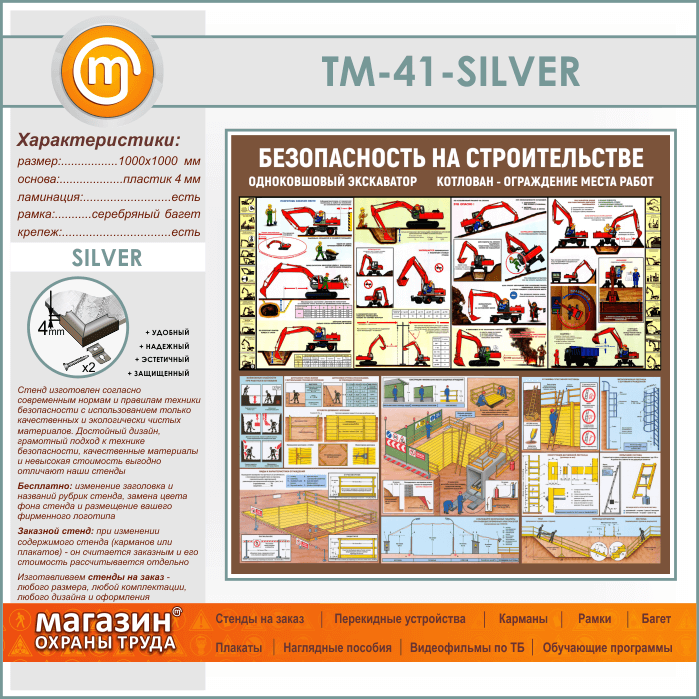 Стенд «Безопасность земляных работ. Экскаватор, котлован» (TM-41-SILVER) в Москве купить