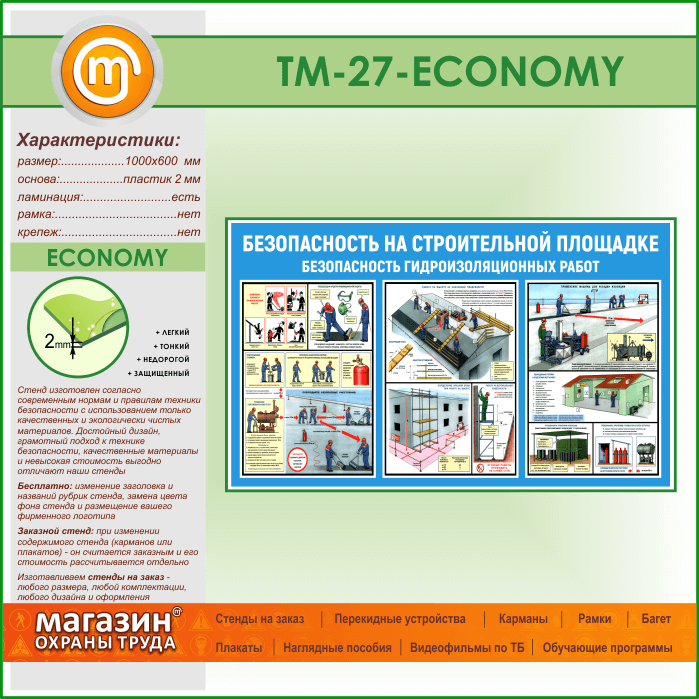 Стенд «Безопасность на строительной площадке. Безопасность гидроизоляционных работ» (TM-27-ECONOMY) в Москве купить
