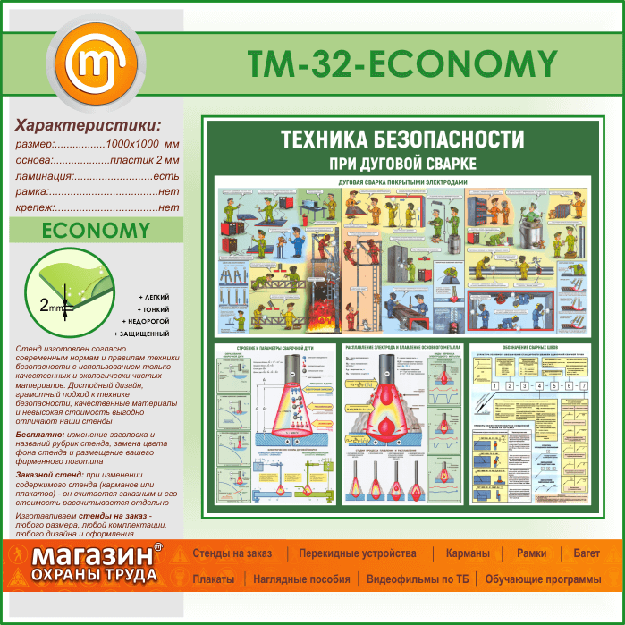 Стенд «Техника безопасности при дуговой сварке» (TM-32-ECONOMY) в Москве купить