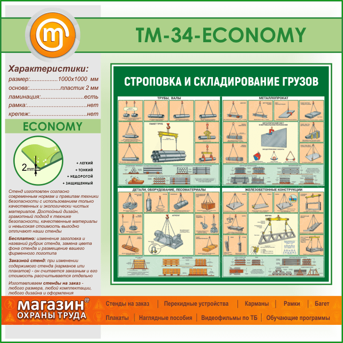 Стенд «Строповка и складирование грузов» (TM-34-ECONOMY) в Москве купить
