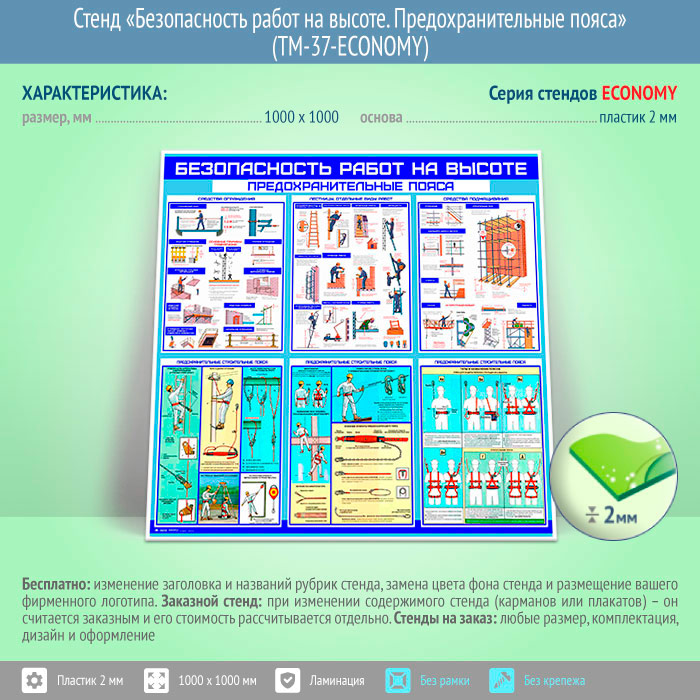 Стенд «Безопасность работ на высоте. Предохранительные пояса» (TM-37-ECONOMY) в Москве купить
