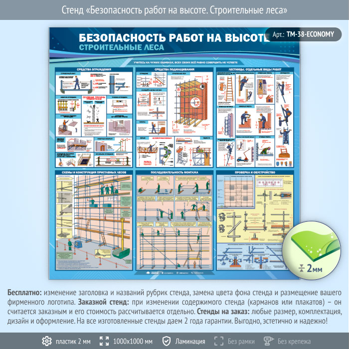 Стенд «Безопасность работ на высоте. Строительные леса» (TM-38-ECONOMY) в Москве купить