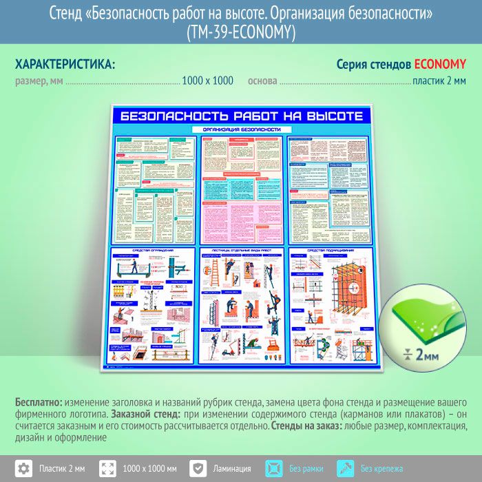 Стенд «Безопасность работ на высоте. Организация безопасности» (TM-39-ECONOMY) в Москве купить