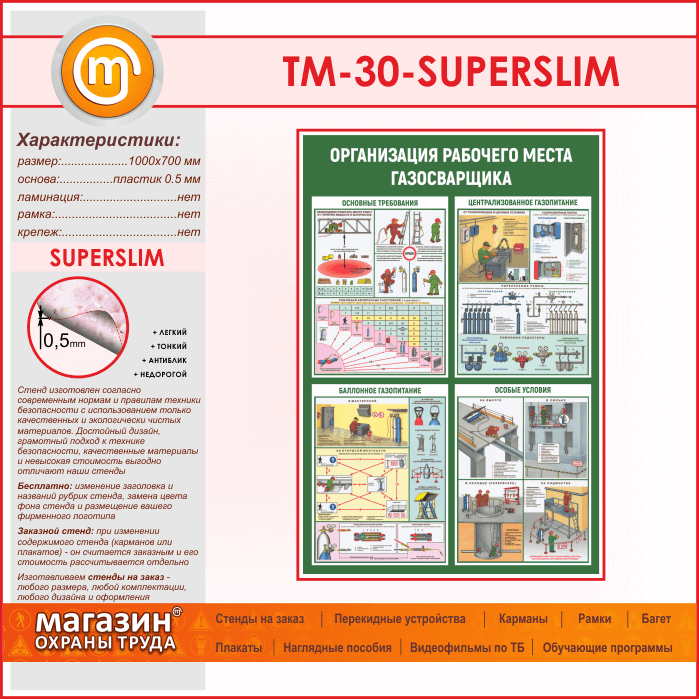 Стенд «Организация рабочего места газосварщика» (TM-30-SUPERSLIM) в Москве купить