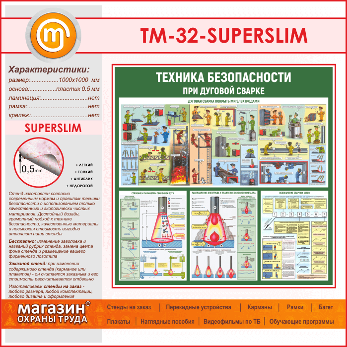 Стенд «Техника безопасности при дуговой сварке» (TM-32-SUPERSLIM) в Москве купить