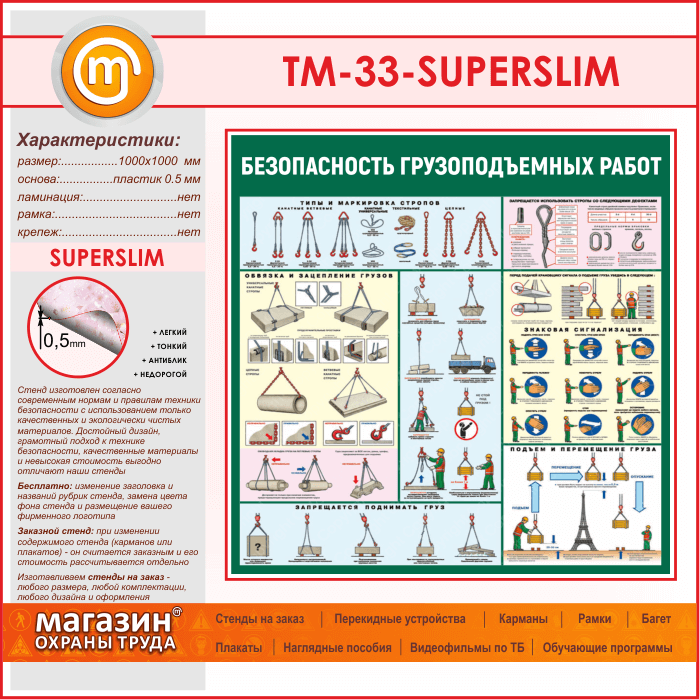 Стенд «Безопасность грузоподъемных работ» (TM-33-SUPERSLIM) в Москве купить
