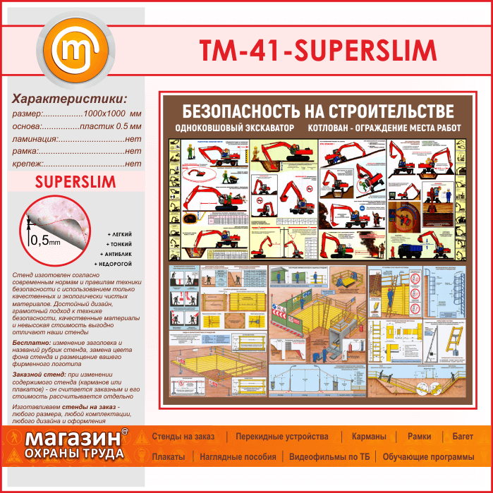Стенд «Безопасность земляных работ. Экскаватор, котлован» (TM-41-SUPERSLIM) в Москве купить