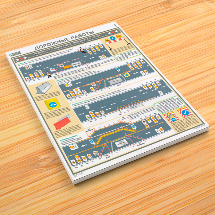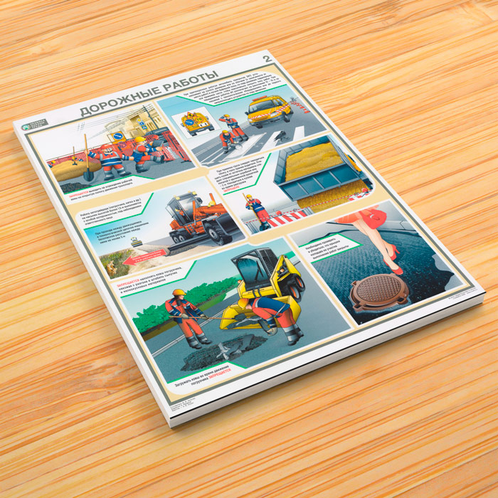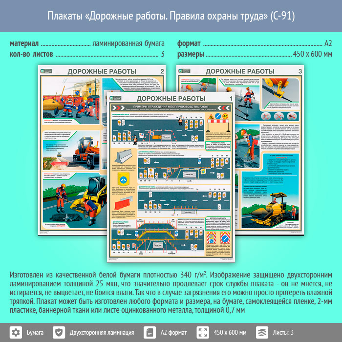 Плакаты «Дорожные работы. Правила охраны труда» (С-91, ламинированная бумага, А2, 3 листа) в Москве купить