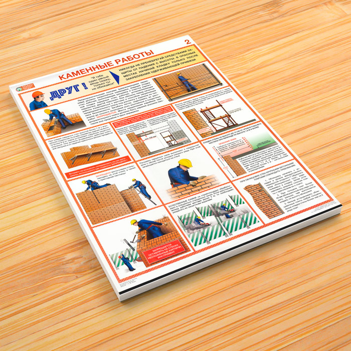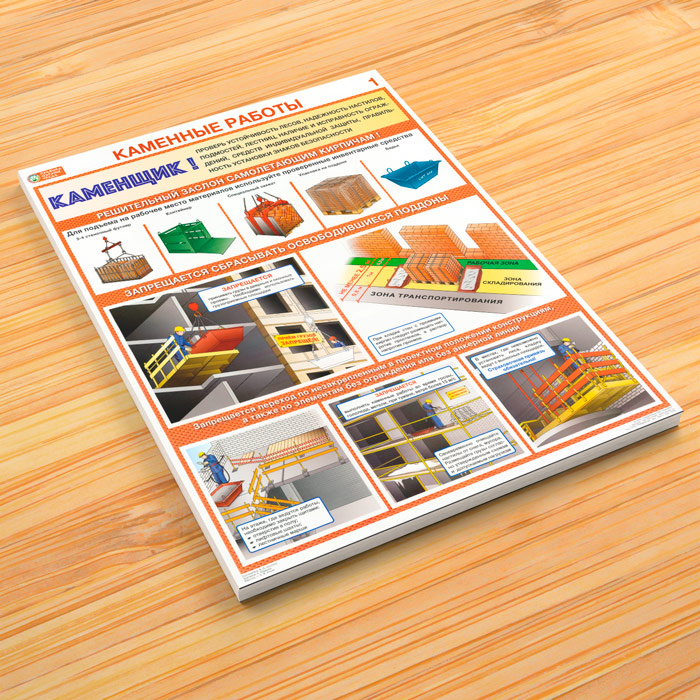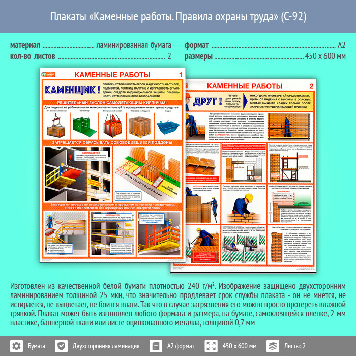 Плакаты «Каменные работы. Правила охраны труда» (С-92, ламинированная бумага, А2, 2 листа) в Москве купить