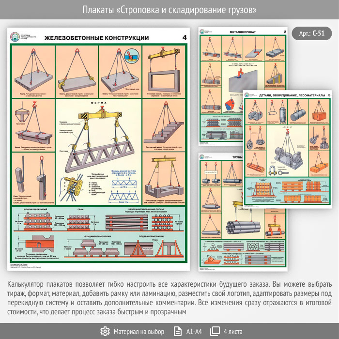 Плакаты «Строповка и складирование грузов» (С-51, 4 листа) в Москве купить