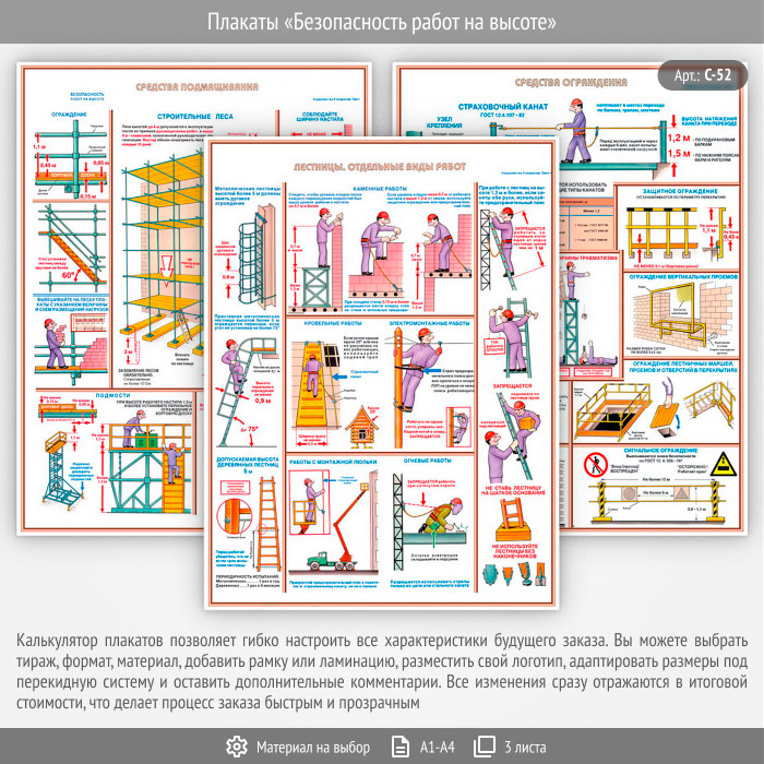 Плакаты «Безопасность работ на высоте» (С-52, 3 листа) в Москве купить