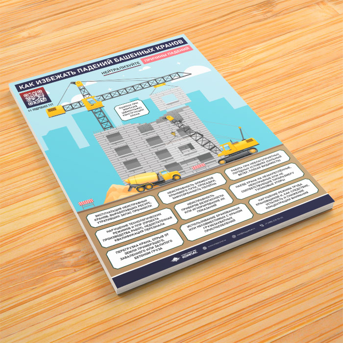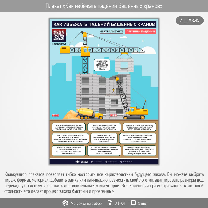Плакат «Как избежать падений башенных кранов» с QR (М-141, 1 лист) в Москве купить