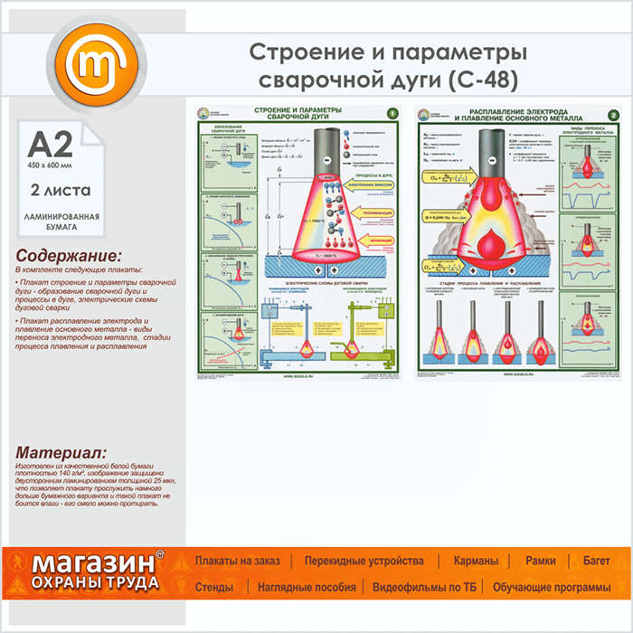 Плакаты «Строение и параметры сварочной дуги» (С-48, ламинированная бумага, А2, 2 листа) в Москве купить