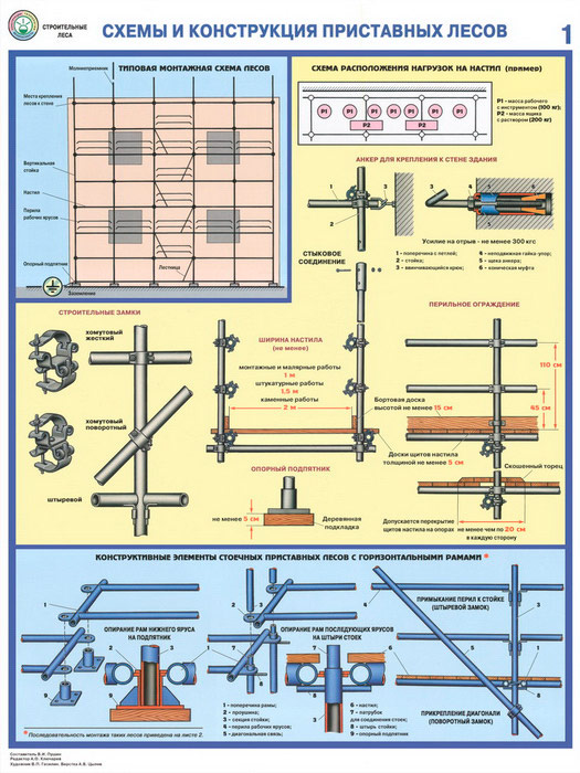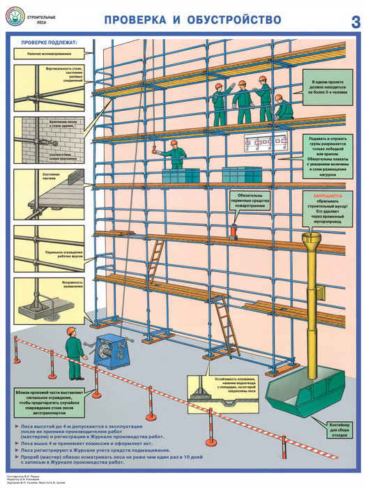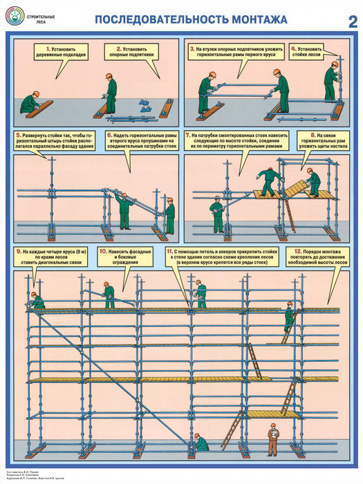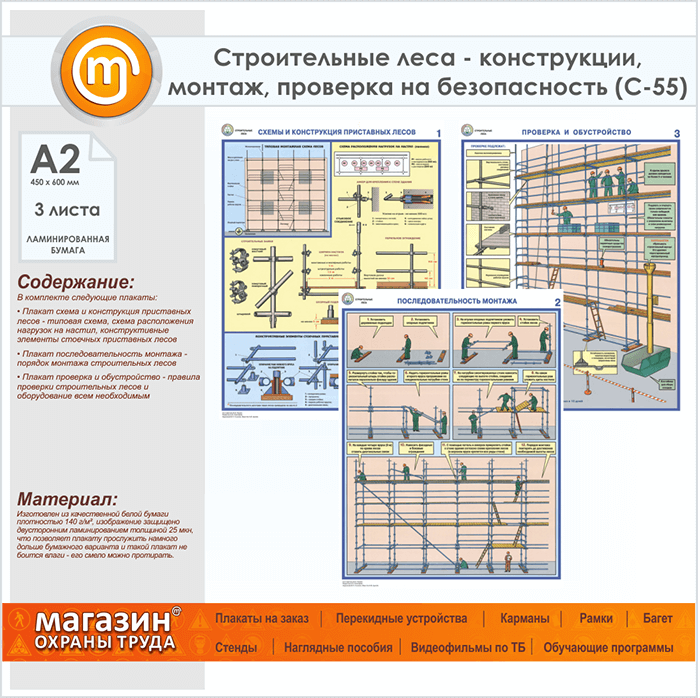 Плакаты «Строительные леса - конструкции, монтаж, проверка на безопасность» (С-55, ламинированная бумага, А2, 3 листа) в Москве купить