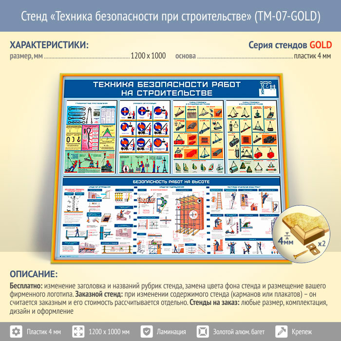Стенд «Техника безопасности при строительстве» (TM-07-GOLD) в Москве купить